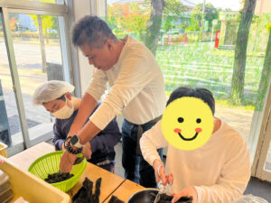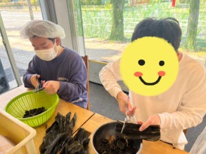 一緒に作業していた理事長さん煮干しをつかんでそのまま・・・!?😂