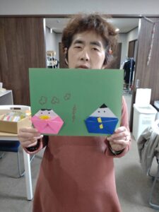 今回は3月ということで折り紙でお内裏様とお雛様を折りました🎎