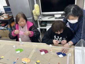 それぞれ好きな色で折ったので、色とりどりのお内裏様とお雛様ができました☺️